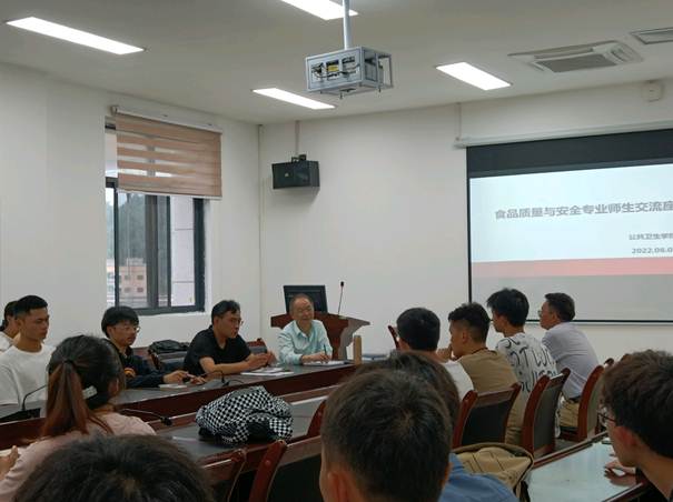为使学院领导和老师能够更好地了解学生的学习及生活状况,全面听取学生对教学、管理等各方面的意见和建议,并针对学生的课业问题进行剖析,我院于6月1日下午七点在三教509会议室召开了师生交流座谈会。公共卫生学院李岩院长,食品质量与安全专业周正老师、张孝刚老师,辅导员王莹老师,以及2021级食安班全体同学参与了此次座谈会。本次座谈会由教师代表周正老师主持。