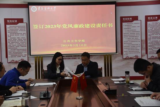 最后,学院党委班子成员与内设科室、各党支部签订党风廉政建设责任书。