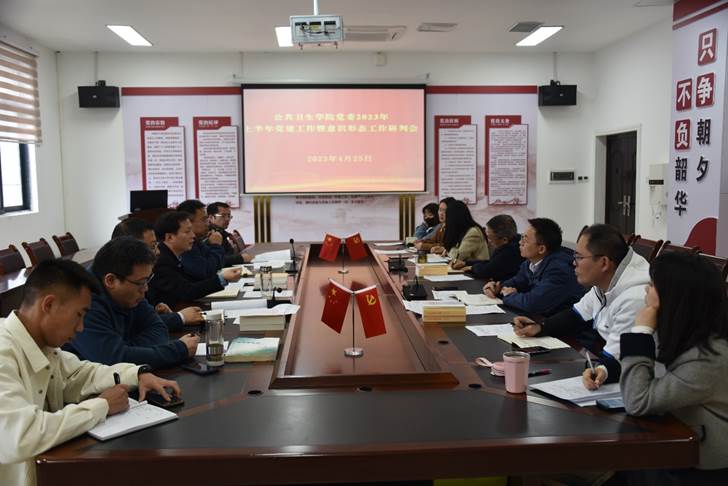 4月25日,公共卫生学院2023年上半年党建暨意识形态工作研判会在学院会议室召开。学院党委领导班子成员、党支部书记、内设科室负责人参加会议。会议由学院党委书记张在金主持。