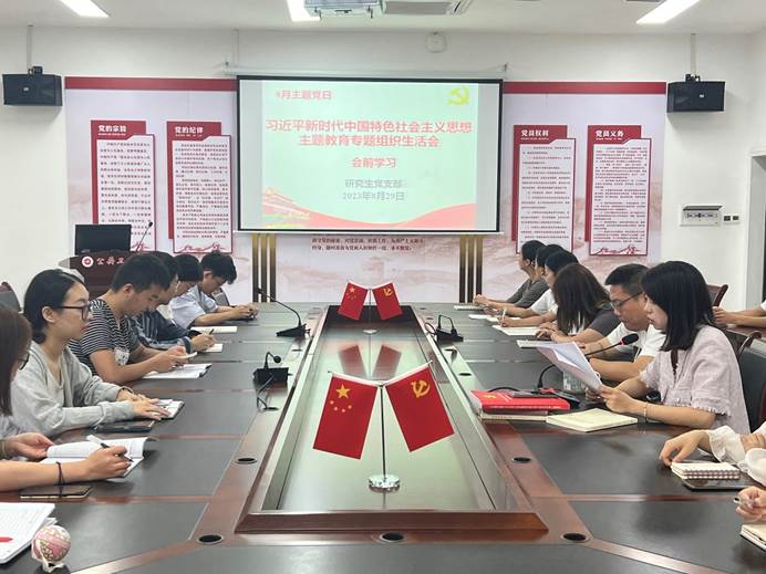 8月29日上午9:30,学院研究生党支部在党员之家开展主题党日暨主题教育专题组织生活会会前集中学习。全体研究生党员参加。党支部书记赵兰同志主持会议。
