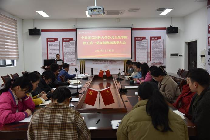 12月12日上午10:30,公共卫生学院教工第一党支部在学院会议室开展了支部换届选举。学院党委委员、副院长、教工第一支部书记刘俊同志主持会议。