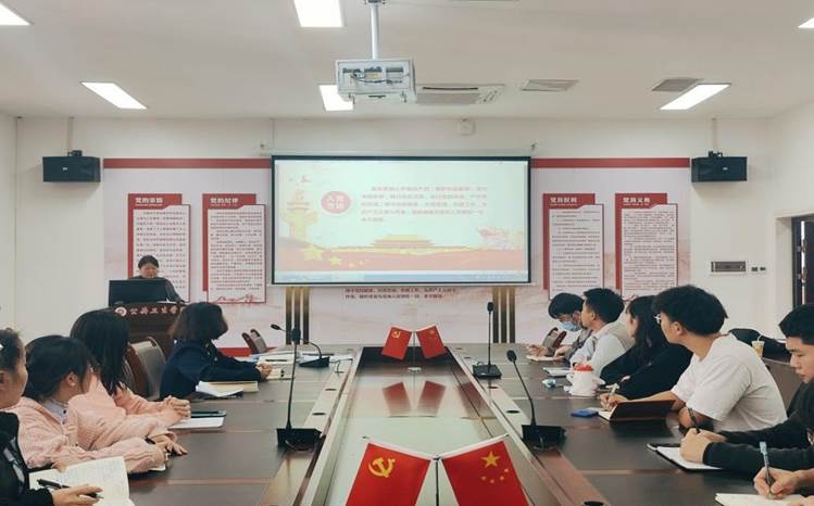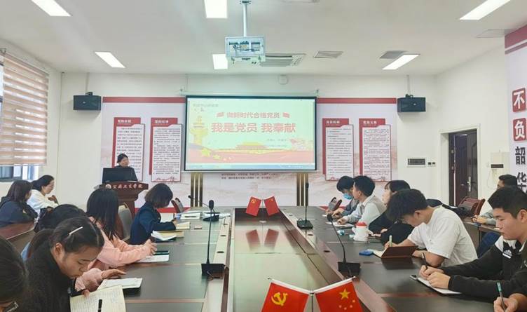 本科生第一党支部书记张爱平以“我是党员我奉献 做新时代合格党员”为题讲授党课。她重点讲述了新时代对党员提出的新要求、党员职责与使命等,并结合学院学生工作实际和共产党员先进模范事迹,强调一名合格党员要把握大势,要有担当和实干,要无私奉献。