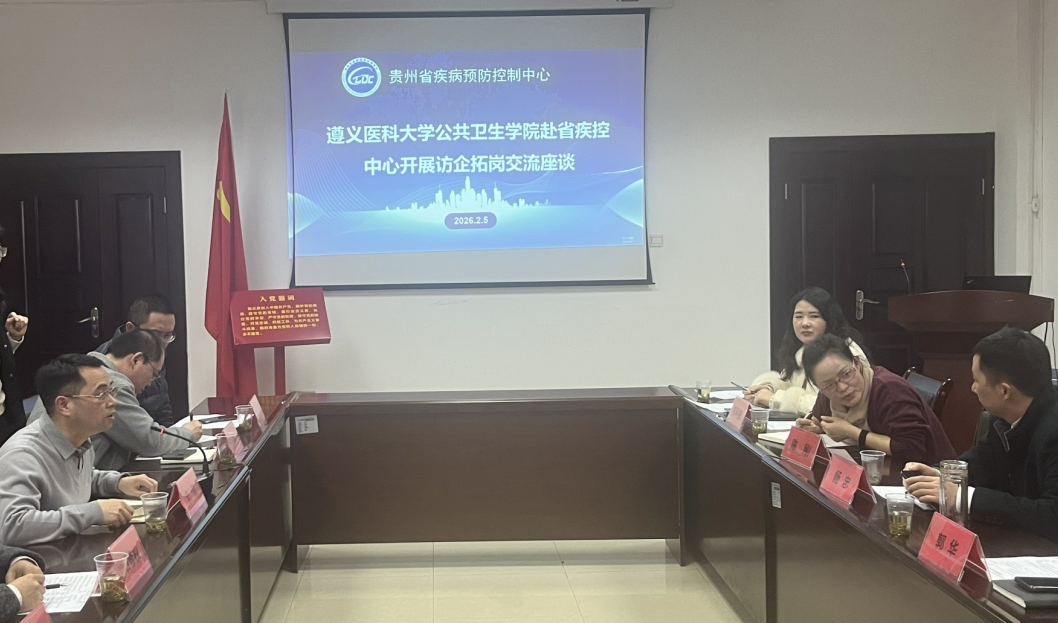 2月5日为进一步深化校地协同、凝聚合作共识,助推公共卫生人才培养与毕业生高质量就业学院副院长刘俊、石修权带队前往贵州省疾病预防控制中心(贵州省预防医学科学研究院)交流座谈。座谈会由贵州省预防医学科学研究院负责人陈刚主持。