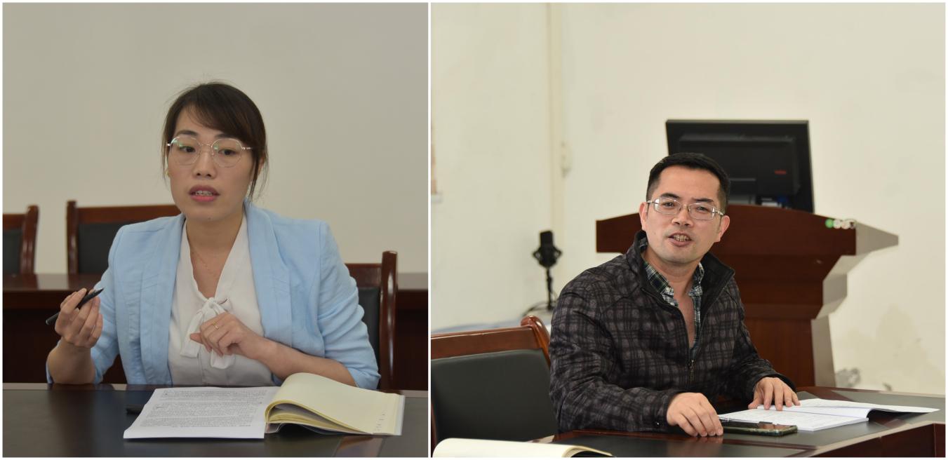 青年教师代表伍周玲和中年教师代表刘俊分别作经验分享