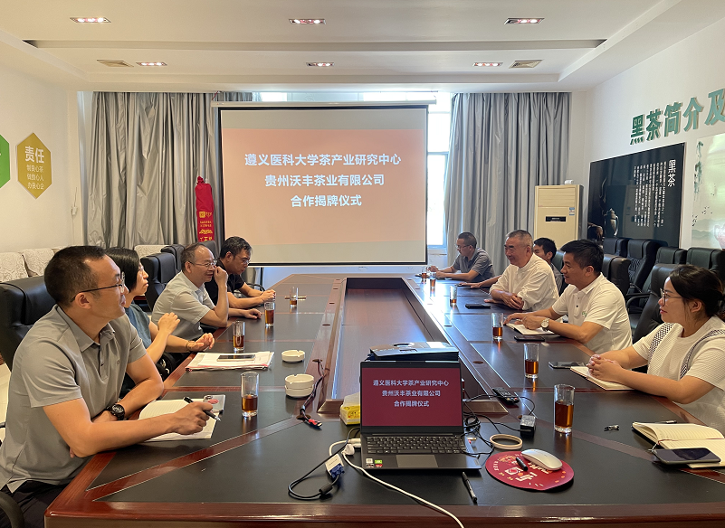 2022年9月7日公共卫生学院茶业科学团队李岩、吕艳春、周正、孙恒等四位老师参加遵义医科大学、贵州沃丰茶业有限公司“茶产业研究中心”揭牌仪式。