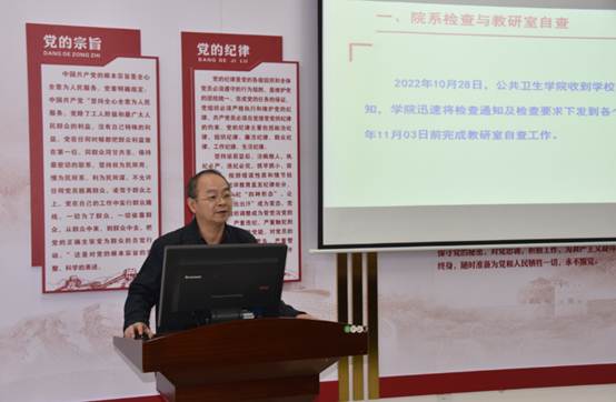 根据学校中期教学检查的统一部署,结合我院教学工作实际情况,各教研室在2022年10月28日至11月02日完成了各教学自查工作,学院于11月03日下午开展了学院中期教学检查。在检查会上,李岩院长作了公共卫生学院中期教学工作汇报。