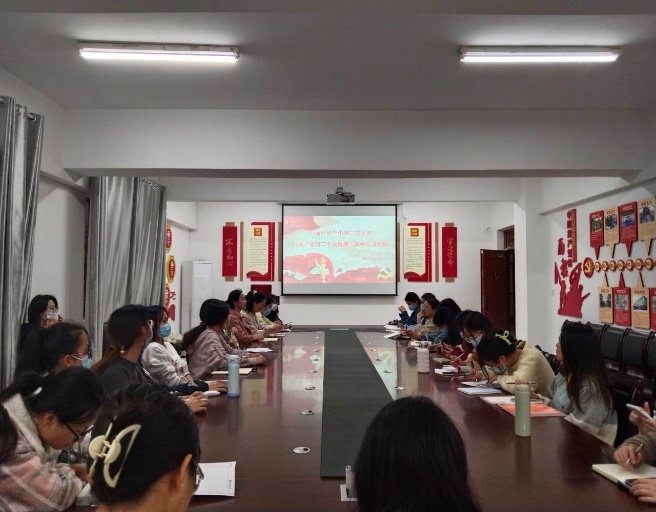 为深入学习贯彻党的二十大精神,2022年11月12日下午6:00,由公共卫生院党委管理的心远社区学生第二党支部在心远社区205党团活动室专题学习党的二十大报告精神,支部全体党员参加会议。党支部书记公共卫生学院2019级食品质量与安全专业的张译文主持学习会。