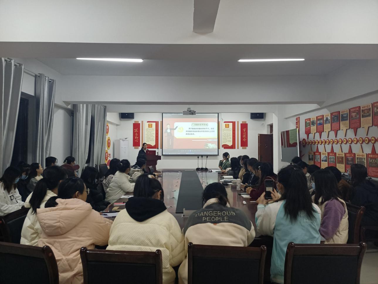11月18日下午6:00,由公共卫生院党委管理的心远社区学生第二党支部在心远社区205党团活动室集中学习了《中国共产党党徽党旗条例》,支部全体党员参加会议。党支部书记、公共卫生学院2019级食品质量与安全专业张译文主持学习会。