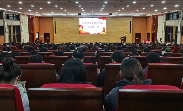 为帮助同学们尽快从疫情影响中走出来,恢复到疫情之前的学习生活的状态,进一步完善学业规划,以积极、健康、向上的精神状态开启新学期的大学生活,2月22日晚7点,公共卫生学院在道德讲堂开展新学期“开学第一课”暨思想政治教育。公共卫生学院党委书记张在金,辅导员李升萍、王莹、张微及学院全体同学参加。学院党委副书记王红卫主持会议。