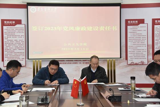 最后,学院党委班子成员与内设科室、各党支部签订党风廉政建设责任书。