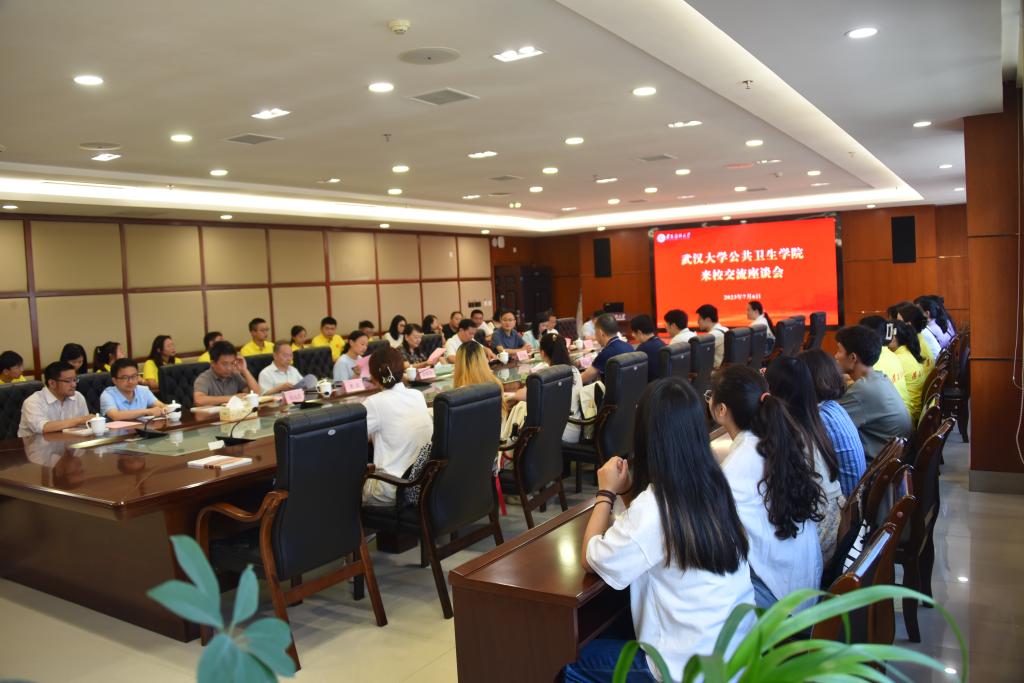 7月6日上午,武汉大学公共卫生学院一行9人来校交流。交流座谈会在学校行政楼五楼2号会议室召开。学校副校长李春鸣出席会议,教育教学质量控制中心、团委相关领导,公共卫生学院班子成员、教师及学生代表参会。会议由公共卫生学院党委书记张在金主持。