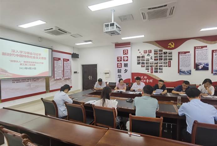 会上,张孝刚同志领学了《习近平总书记关于党的建设的重要思想》《习近平新时代中国特色社会主义思想的世界观和方法论专题摘编》(第三章 把握好习近平新时代中国特色社会主义思想的世界观和方法论,坚持好、运用好贯穿其中的立场观点方法)等内容并作研讨发言。组织委员伍周玲同志领学了《习近平新时代中国特色社会主义思想学习纲要》(第九章 以新发展理念引领高质量发展)。纪律检查委员谌小立同志领学了《论党的自我革命》之用好批评和自我批评武器。统战委员胡颖同志领学《习近平总书记在文化传承发展座谈会上的重要讲话精神》等内容。