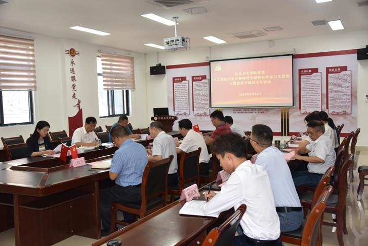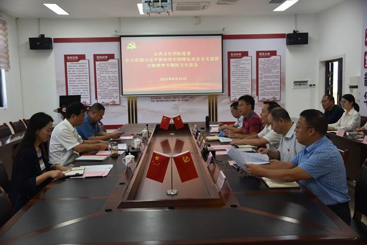 8月31日上午10:30,公共卫生学院党委学习贯彻习近平新时代中国特色社会主义思想主题教育专题民主生活会在学院会议室召开。学校党委副书记、校长刘建国出席并作点评讲话,学校主题教育办副主任彭正员、工作人员吴虞娱到会指导。学院党委领导班子全体成员参会。会议由学院党委书记张在金主持。
