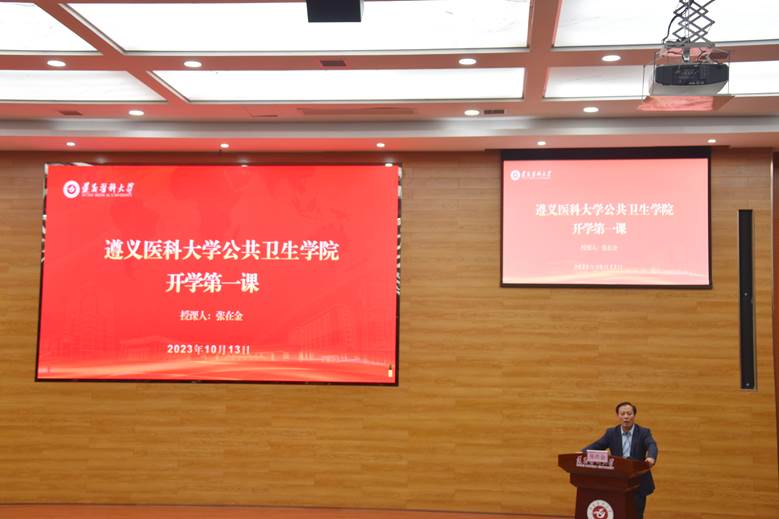 新学期、新目标、新征程。10月13日下午,学院党委书记张在金在道德讲堂为学院2023级新生讲授开学第一课。学院党委副书记、院长李岩,党委副书记王红卫,党委委员刘俊,各教研室主任、科室负责人、教师代表、辅导员、兼职班主任及全体2023级新生参加开学第一课。