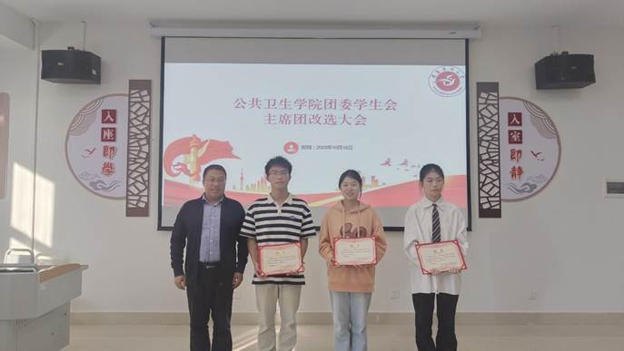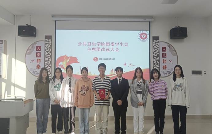 为加强学院团委和学生会两支学生队伍建设,选拔优秀人才参与学生管理工作,10月15日,公共卫生学院团委学生会在我院遇时学堂召开了新一届学生会主席团改选大会。学院党委副书记王红卫出席改选大会并讲话,辅导员张微、李升萍、王莹,团委学生会各部部长及2023级各班班委参加会议。刘矜青主持会议。