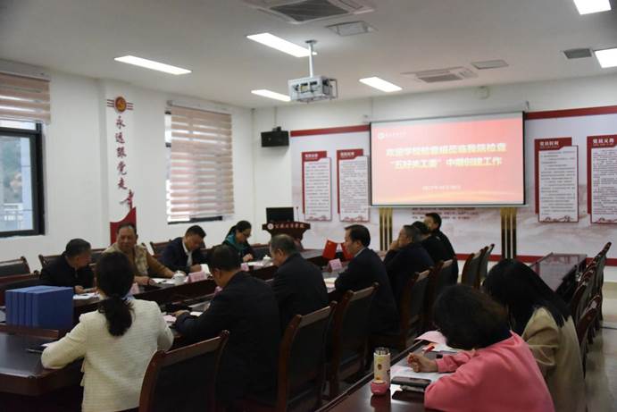 为推进学校创建“五好关工委”工作科学化、制度化、规范化建设,强化“五好关工委”创建工作,10月20日上午9:00,学校关工委第四检查组李实明、顾土龙、柏正华、邵丽一行4人到我院检查“五好关工委” 中期创建工作。学院党委班子成员、党支部负责人、研究生及本科生管理办公室等人员参加会议。会议由学院党委书记张在金主持。