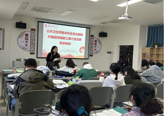 11月17日,学院本科生党支部与外国语学院教工第三党支部在公共卫生学院“遇时学堂”开展联学联做活动。会议由公共卫生学院本科生党支部书记张爱平同志主持,公共卫生学院本科生党支部毕业年级党员、考研学生和外国语学院教工第三党支部教师党员参加活动。