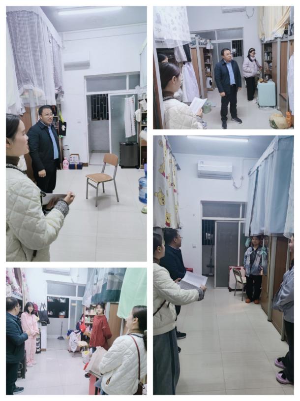 走访之前,王书记向大家通报了学院和学校近期的重点学生工作和活动,并对学院近期学生工作给予了充分肯定。查寝过程中,王书记同大家亲切交流,深入了解同学们的学习和生活情况,听取同学们对学院学生管理、活动安排、教学管理等各方面意见建议。针对近期气温变化较大的情况,王书记嘱咐大家注意添加衣服,并要求大家要遵守学校宿舍管理条例,禁止使用违规电器等物品,同时要做好寝室内务管理,争创文明寝室。最后,他提醒大家部分课程接近尾声,本学期教学任务已经过半,希望大家提前复习,认真备考,考出好成绩。