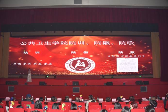 晚会共有三个篇章,分别是“厚德求实 红色传承”“青春有‘卫’逐梦蓝天”“青年有为 继往开来”,每一个篇章都有独特的韵味。一首《我们的时光》乐队开场表演,点燃整场晚会的序幕;歌伴舞《党旗飘扬的地方》、歌曲《幸福中国一起走》热情讴歌党的光辉历程,唱响新时代赞歌;情景剧表演《错位时空》、诗朗诵《坚守初心使命 健康点亮未来》、歌舞《领航》体现了青年学子的家国情怀与时代担当。晚会现场气氛热烈、精彩纷呈,观众掌声、喝彩声汇成一片欢乐的海洋。令人期待的公共卫生学院院训、院徽、院歌的发布将晚会推向了高潮。最后,晚会在学院共唱“卫”来合唱团带来的院歌《健康中国我先行》中落下帷幕。