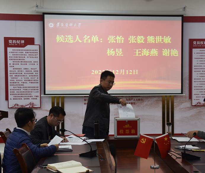会议审议并通过了刘俊同志代表上届支部委员会作的工作报告。会议通过了《中共遵义医科大学公共卫生学院教工第一支部委员会党员大会选举办法(草案)》及总监票人、监票人和计票人名单。通过无记名投票选举张怡、熊世敏、张毅、王海燕、杨昱同志为新一届支部委员。随后,公共卫生学院教工第一党支部召开了第二届委员会第一次会议,选举张怡同志为支部书记,熊世敏同志为支部副书记兼组织委员,王海燕同志为宣传委员,张毅同志为纪律检查委员,杨昱同志为统战委员。熊世敏同志代表一新届支委领导班子表态,表示支部和党员将更加紧密地团结在以习近平同志为核心的党中央周围,在学校党委、院党委的正确领导下,坚持党的理论和路线方针政策,进一步统一思想,牢记使命,发挥好党员先锋模范作用,团结奋进,同心同德,努力奋斗!