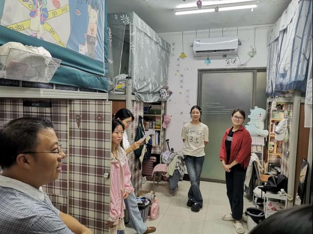 查寝过程中,大家认真核对每位同学的返校情况,对未及时返校的学生进行详细了解并及时跟进。期间,王红卫副书记及各位老师与同学们热情交流,鼓励同学们尽快从假期状态中调整过来,以饱满的热情和专注的态度投入到新学期的学习和生活中。同时,还就校园安全、防反诈安全、违规电器使用等进行了强调和检查。