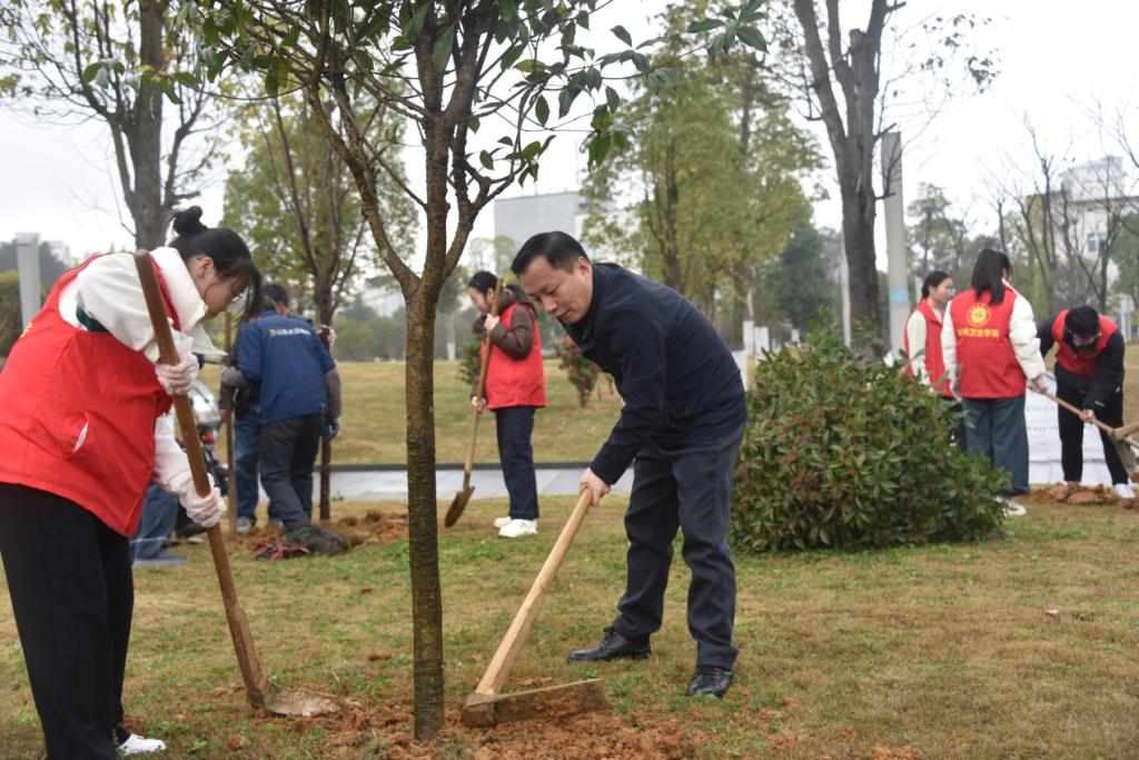 春回大地,绿绽枝头。3月15日上午,公共卫生学院党委书记张在金,党委副书记、副院长(主持工作)周远忠,党委副书记王红卫,副院长刘俊,党委委员石修权、学管办以及研究生党支部、本科生党支部党员代表和入党积极分子30余人齐聚学校第四教学楼后的生态绿地开展植树节劳动实践教育活动。