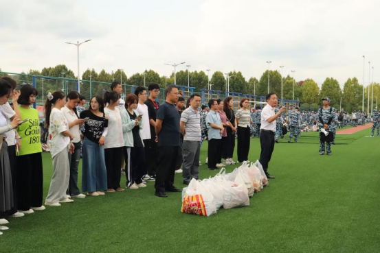 为深入了解2025级新生军训情况,传递学院关怀,9月8日下午,学院党委书记张在金携领导班子成员、全体辅导员、兼职班主任、团委及学生会同学赴学校北区军训现场,亲切慰问学院全体新生,并送上慰问礼物。