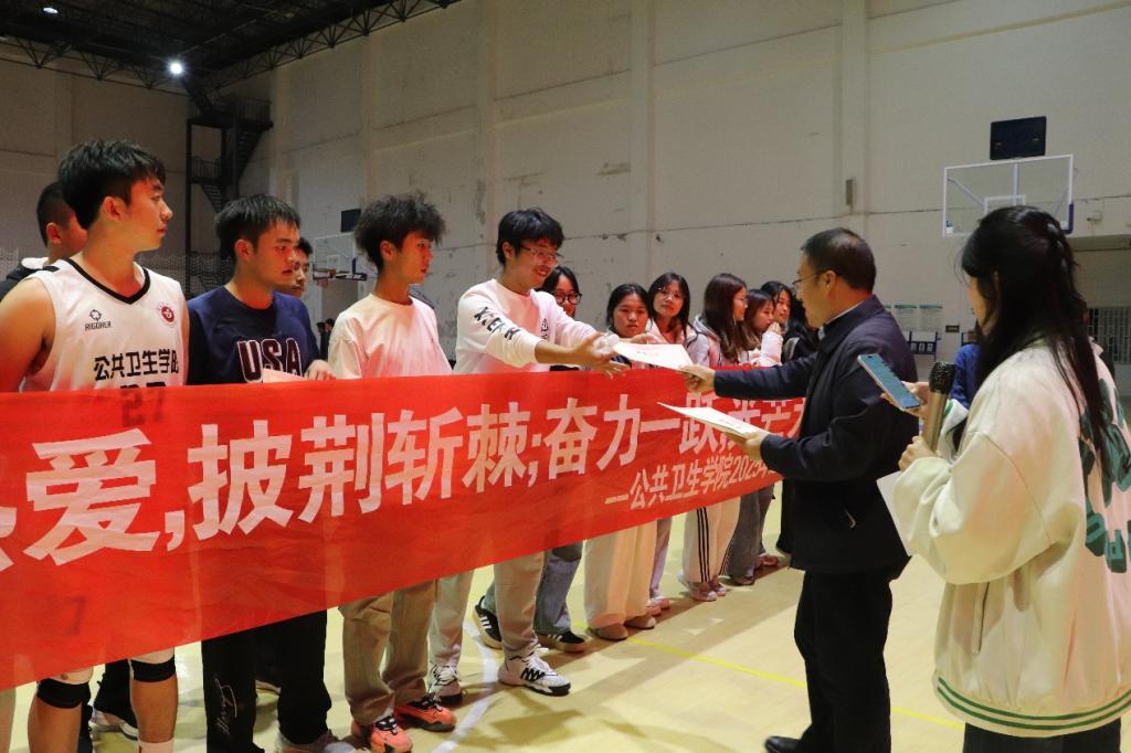 10月23日18:00,公共卫生学院2025年“迎新杯”篮球赛闭幕式在北区体育馆圆满落幕。学院党委副书记王红卫、学院团委副书记张微,学院辅导员人李升萍、何娟,25级兼职班主任王漫、罗意参加活动。闭幕式由学生会体育部罗丽主持。