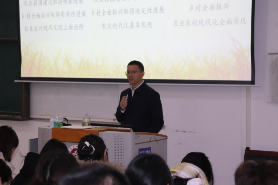 12月4日上午,遵义医科大学党委常委、副校长陈永正教授在第三阶梯教室为我院预防医学等专业171名学生讲授形势与政策课。陈校长以“阔步迈向农业强国”为主题,系统解析农业强国建设的时代命题。