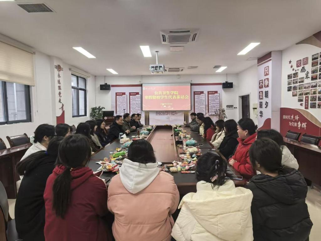 岁序更替,华章日新。在2026年新春佳节来临之际,为进一步增进师生情谊、凝聚奋进力量,2月4日上午,公共卫生学院举办“共叙新春 携手前行”师生茶话会。学院党委书记张在金,党委副书记王红卫,党委委员、副院长刘俊、石修权,辅导员老师与留校学生代表近30人欢聚一堂,共话成长、同迎新春。