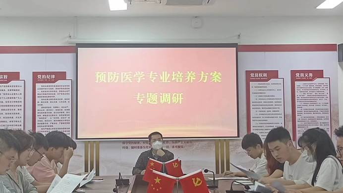 根据学院主题教育统一安排,为进一步提升预防医学专业的教学质量,推进本科教育教学审核评估和国家一流专业建设,解决预防医学专业学生在理论及实践学习中存在的问题,5月18日晚上7点,学院党委委员刘俊在学院会议室针对预防医学专业培养方案进行专题调研。预防医学专业2018级、2019级、2020级、2021级和2022级学生代表参加调研。会议由刘俊同志主持。