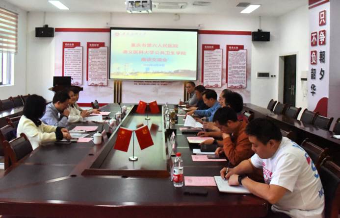 4月19日,重庆市第六人民医院党委委员、副院长张伦碧一行赴我院就院校深度合作事宜进行调研交流。学院党委书记张在金、院长李岩、正处级组织员罗开源、副院长周远忠、党委副书记王红卫参加座谈会。