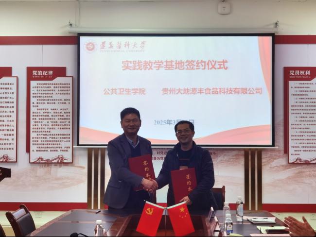 活动中,王红卫副书记首先代表学院对骆弟益总经理一行的到来表示热烈欢迎,并表示经双方前期的充分沟通,贵州大地源丰食品科技有限公司来院交流并开展专场招聘和宣讲,不但是对我院专业人才培养质量的充分肯定,更是为我院进一步提升人才培养质量给予大力的支持,希望双方以此次交流为契机,为学生教学实践培养、科学研究、毕业生就业等拓宽合作思路。随后,双方就实践教学基地建设、专硕产业导师遴选,以及公司未来科研合作等方面进行深度交流,并达成了多项共识。学院刘俊副院长与骆弟益代表双方签订了实践教学基地协议。
